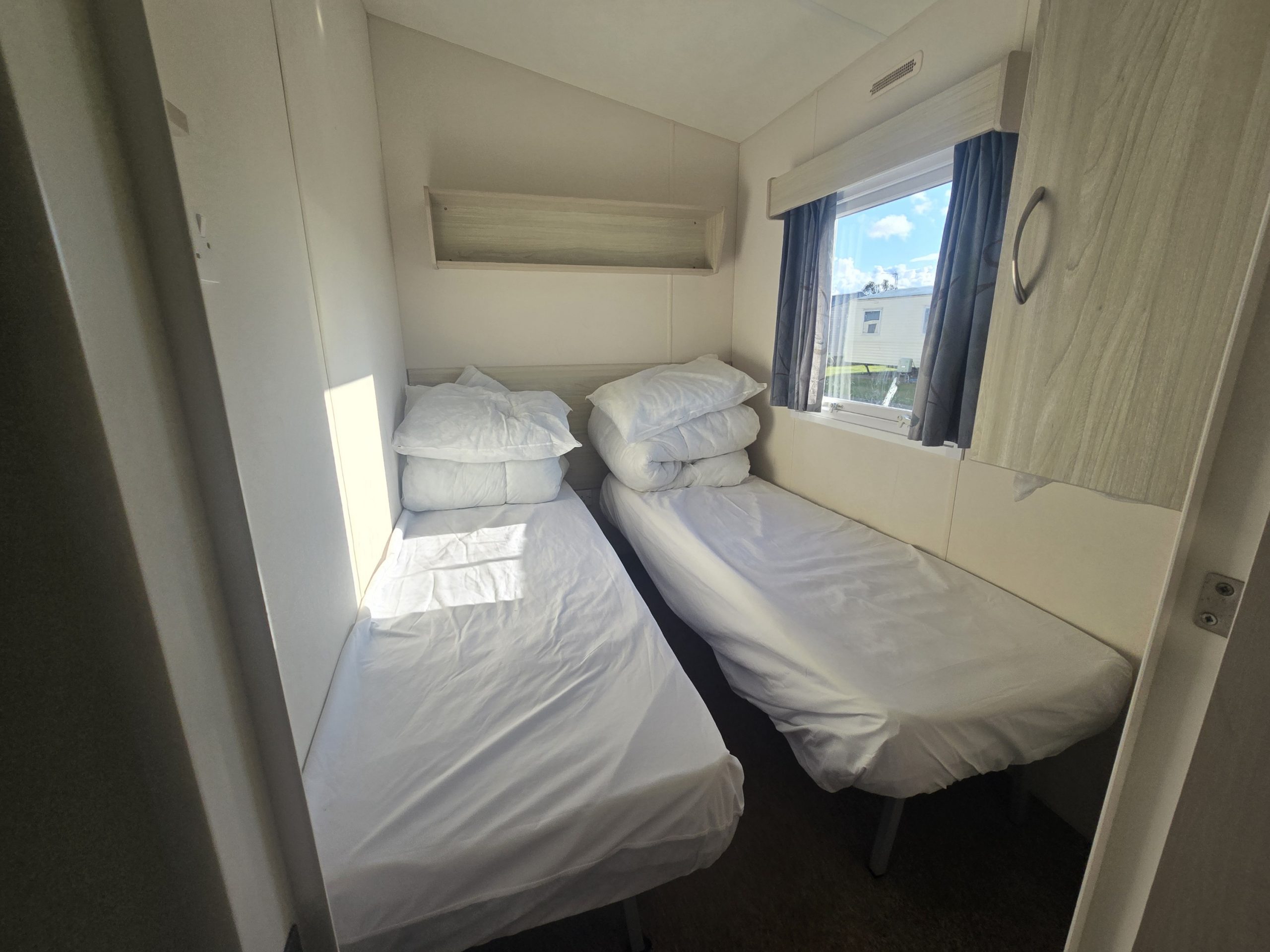 Please note our budget caravans do not provide bed linen or towels this helps us lower the cost of your stays however we can provide bed linen via a 3rd party for an additional cost, duvets and pillows are provided so please bring your own sheets and covers and towels.